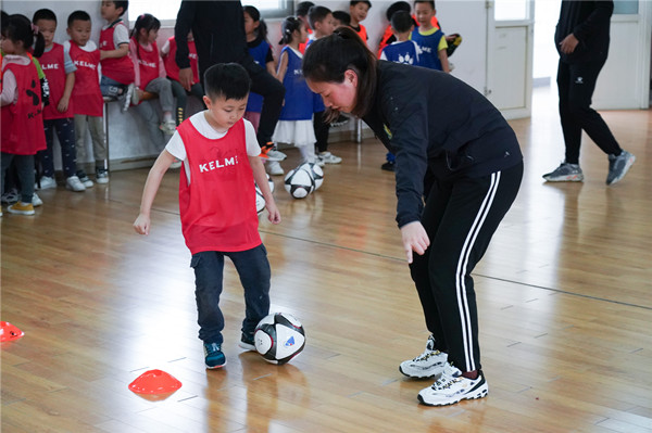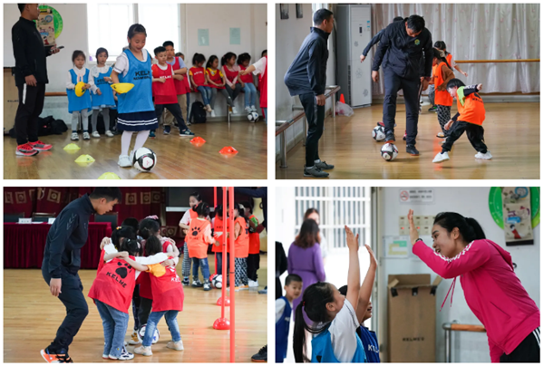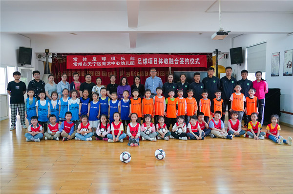 签约仪式前,我校常体足球俱乐部的教练员们还与近40名孩子亲密互动,和他们做起了游戏,带领他们感受足球的乐趣,也希望未来从青龙中心幼儿园可以走出优秀的“足球小将”。