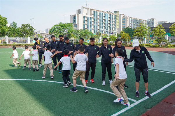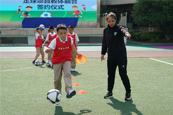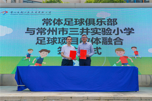常州市三井实验小学共分为三个校区,这次,我校常体足球俱乐部来到中央花园校区。签约仪式前,教练员们还和近50名二年级的小学生们亲密互动,和他们做起了游戏,带领他们感受足球的乐趣。今后,俱乐部也将走进本部校区和龙城大道校区,继续开展足球进校园活动。
