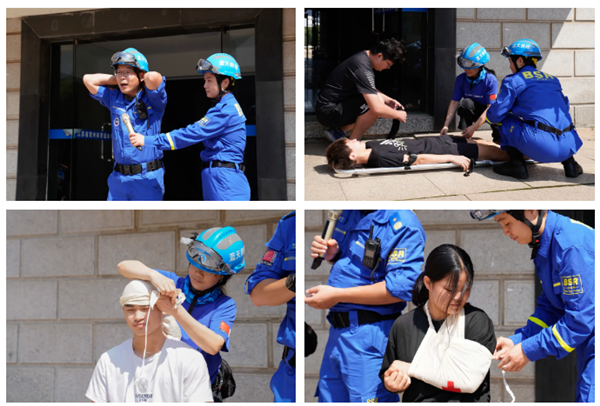 蓝天救援队的救援专家们详细讲解了心肺复苏、创伤救护、排除气道异物等基本技能,并进行实践操作方面的培训,还邀请部分学生亲身体验创伤救护的急救方法。同学们热情高涨,认真观摩学习。
