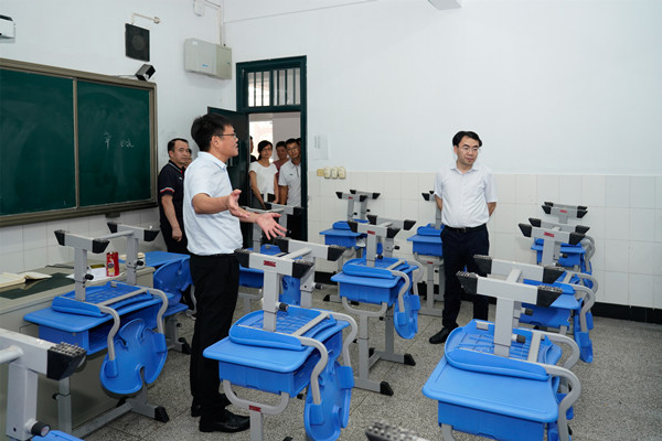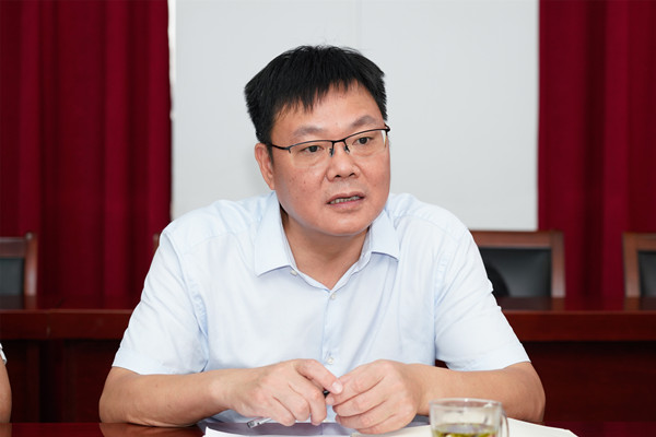 ▲调研现场,校长邓锁荣就学校的基本情况作了介绍。