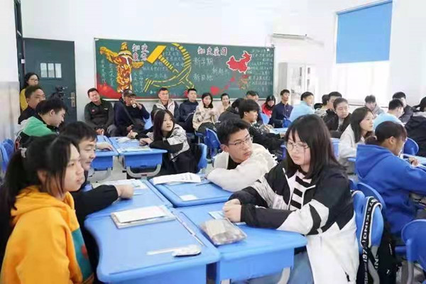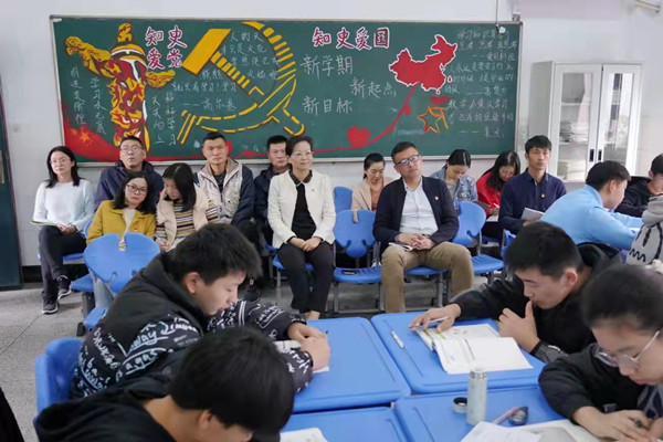 听课的党员们沉浸在活跃的课堂氛围中,他们或认真观察,或与学生一起沉思,边记录,边分析。