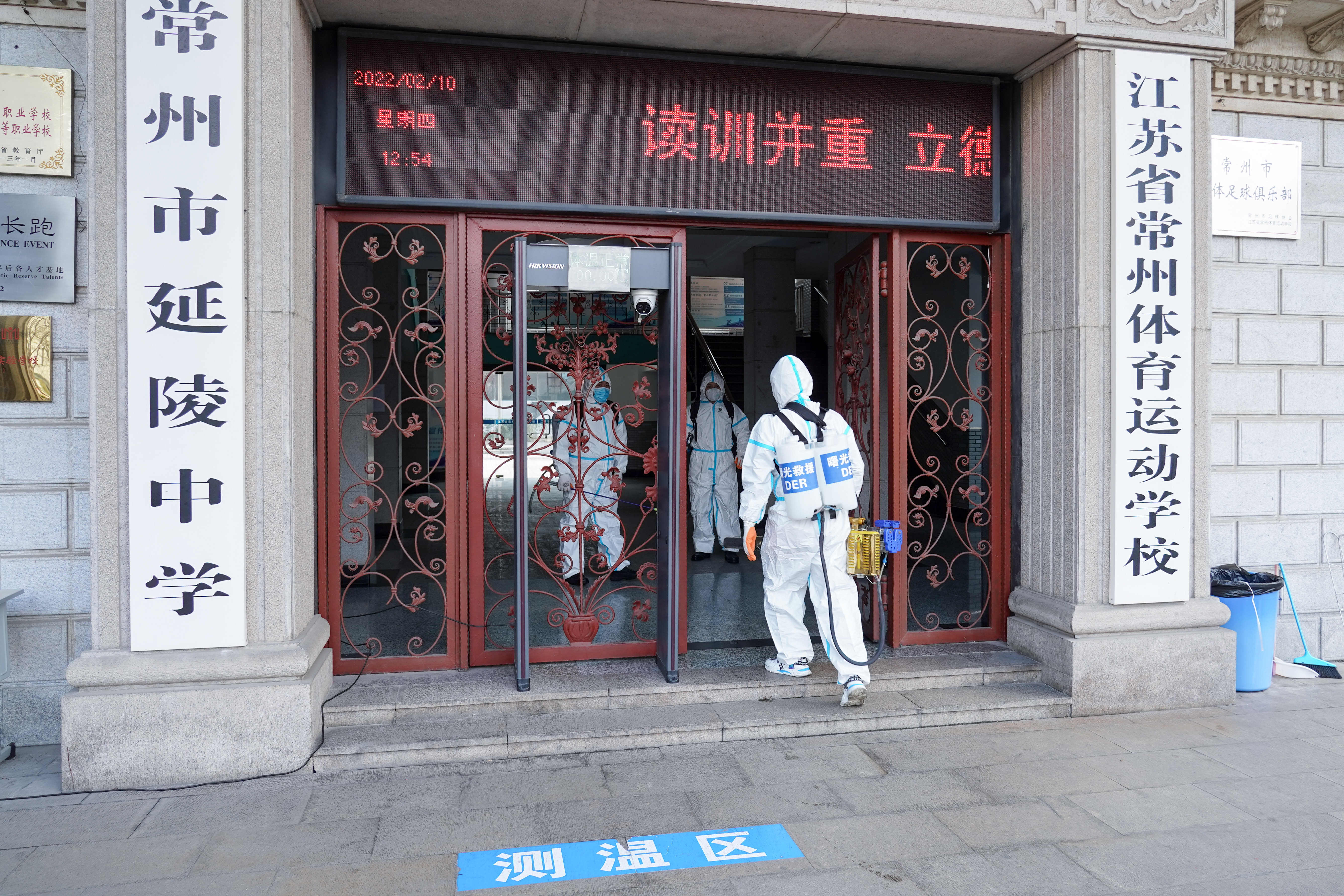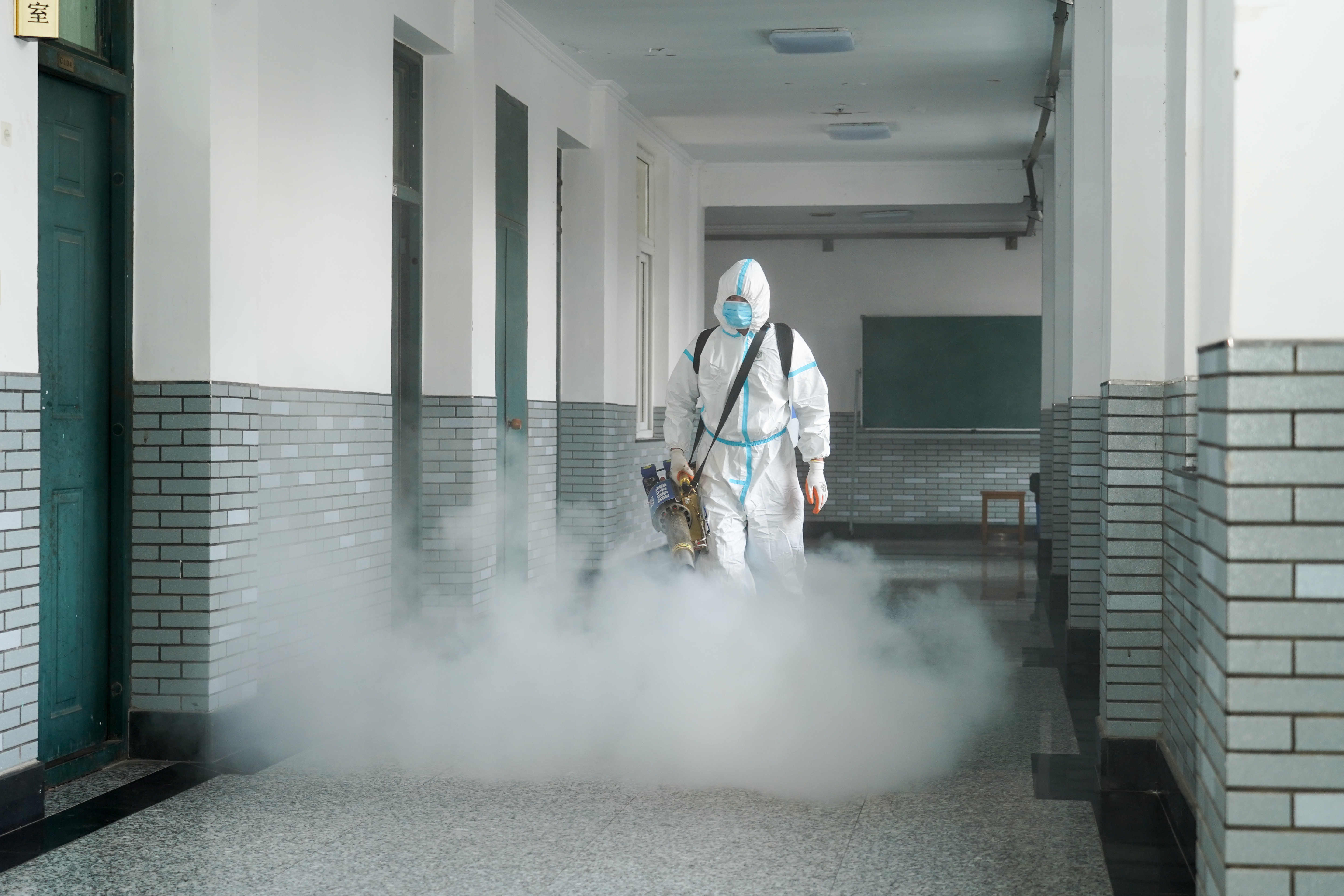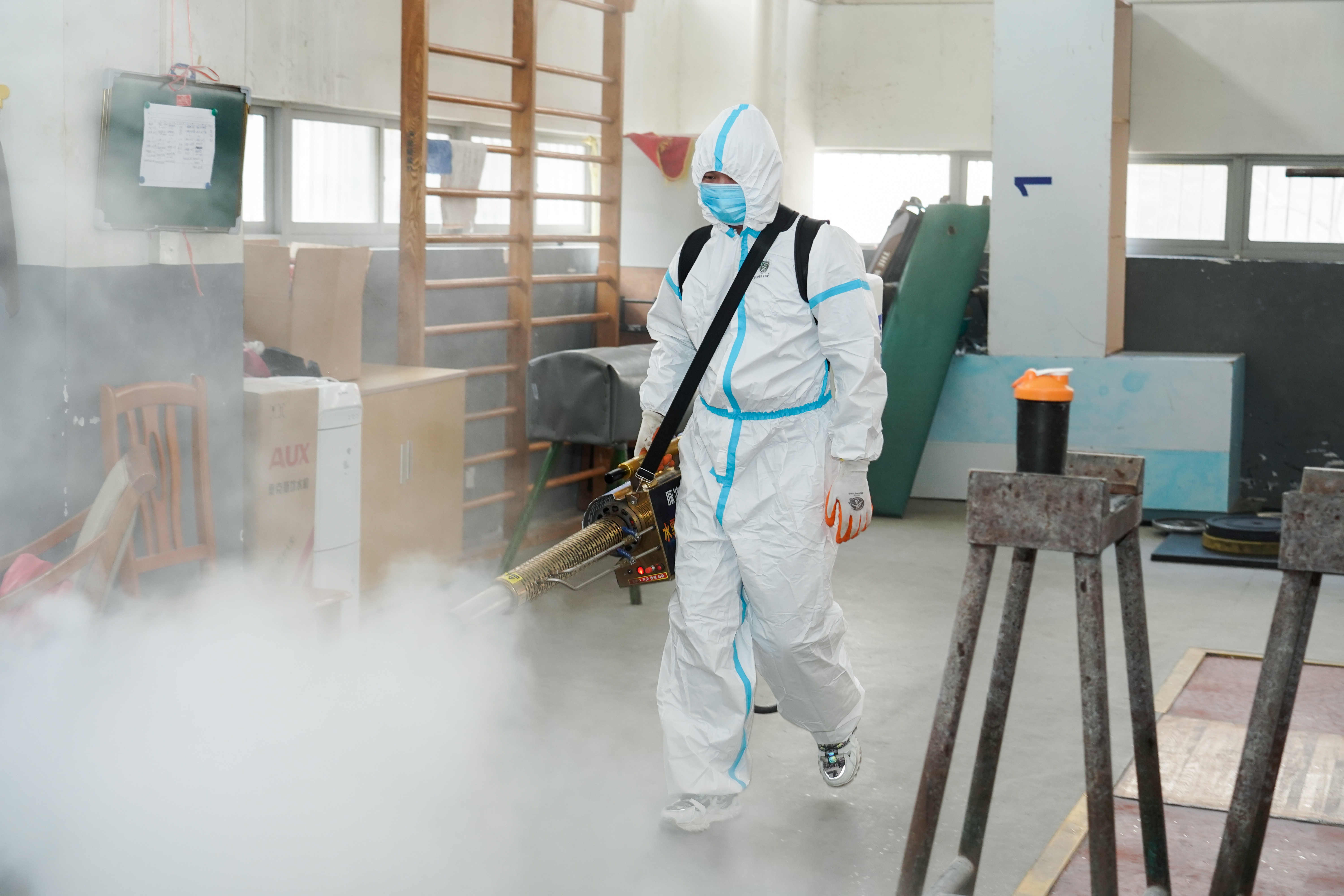 消杀过程中,救援队工作人员对教学楼、办公室、教室、训练场馆、食堂、宿舍、卫生间及校园环境进行了消毒,严格按照操作规范,按比例配兑消毒液进行喷洒,不放过一处卫生死角,特别是对桌椅、垃圾桶、门把手、走廊栏杆、卫生间等接触性区域进行重点消毒,彻底切断病毒的传播途径。
