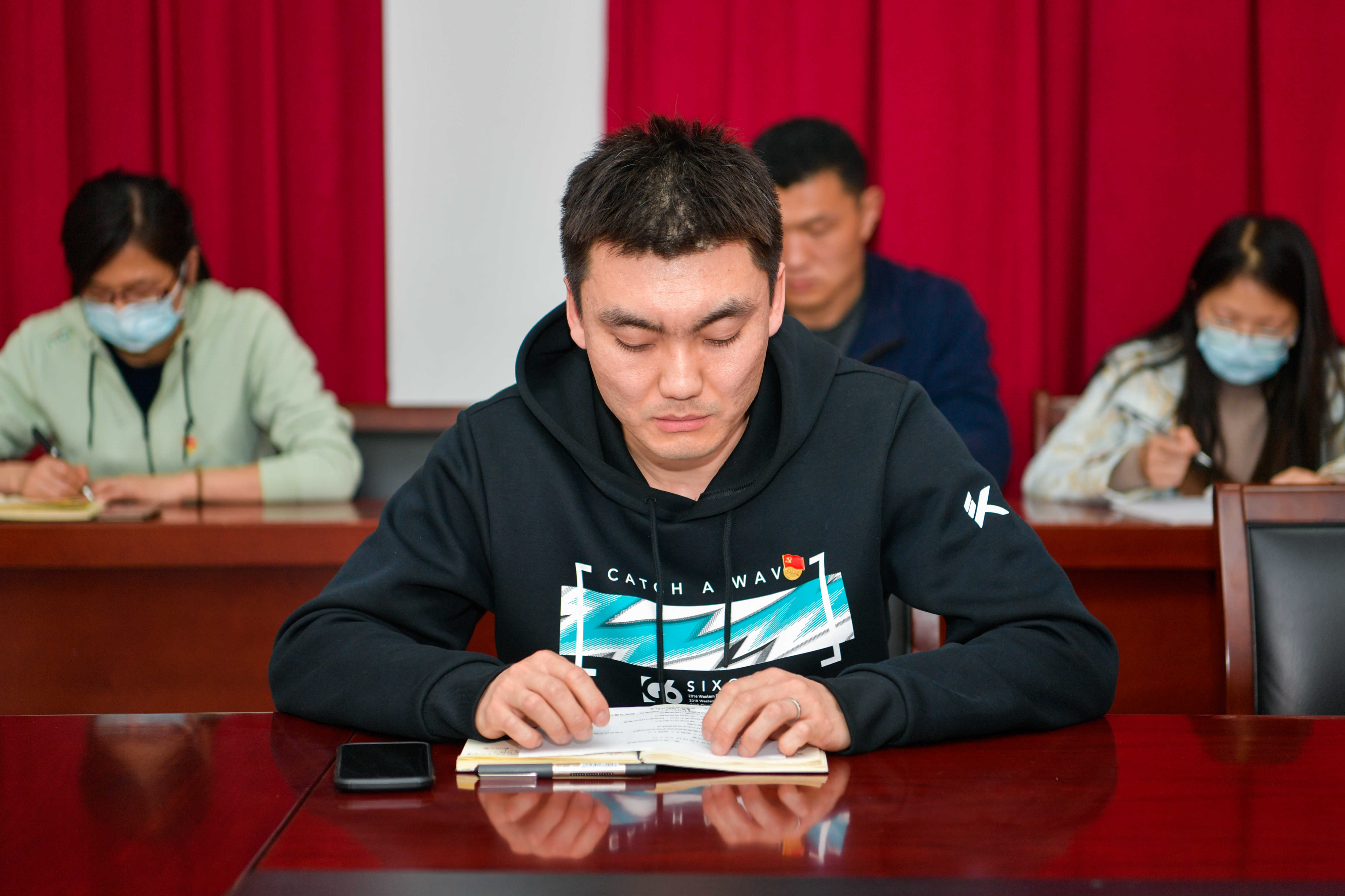 会议开始前,我校党支部书记戚美琴带领全体党员学习题为《弘扬体育精神,振奋中国力量》的《求是》文章,并带领大家观看专题片《榜样6》。