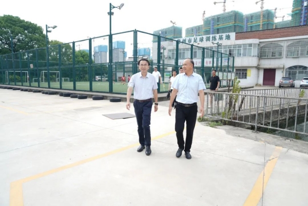 7月14日下午,市体育局局长杜吉宾、三级调研员樊百成一行来到常州市东青实验学校,对三大球项目开展工作进行调研,常州市东青实验学校校长商骏涛等陪同。