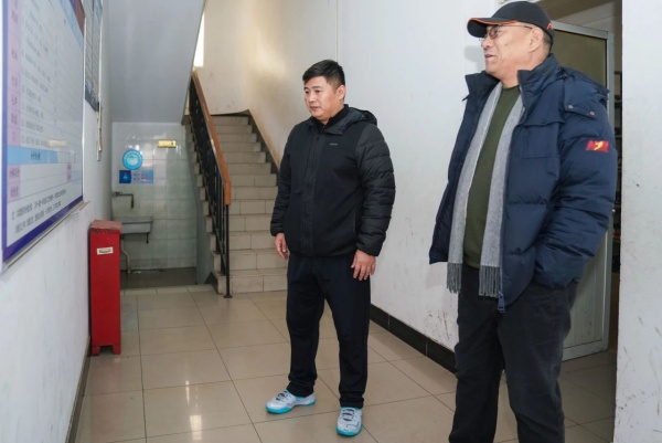 1月13日上午,运动学校校长卜君、副校长李同灵一行调研男篮各梯队。
