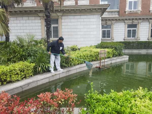 大家充分利用课余时间,带上打捞网兜、扫把、垃圾桶等工具,甚至徒手上阵,打捞池塘里的杂物垃圾,清理校园内卫生死角,扫除落叶纸屑,捡拾地面垃圾等,他们不怕脏、不怕苦、不怕累,干得热火朝天。大家用自己的辛勤劳动换来了校园干净整洁的环境,用实际行动诠释向上向善的美德力量,看着美丽的校园,大家都露出了开心的笑容。