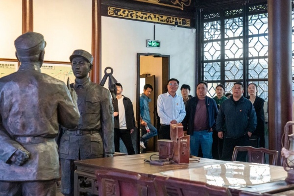 缅怀先烈,砥砺前行。学校一行人首先来到新四军江南指挥部司令部旧址,在这里大家详细了解了新四军江南部队在陈毅将军、粟裕将军的率领下,深入苏南敌后,开创和发展苏南抗日根据地的战斗历程。