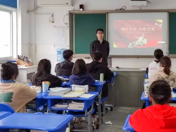 各班召开主题班会,老师在课堂上向学生们普及革命先烈的英雄故事,弘扬爱国主义精神,激发学生对革命英雄的崇敬之情,教育大家谨记英烈精神、传承红色基因,树立伟大志向,不负使命,沿着先辈的足迹,为中华民族振兴而奋斗!