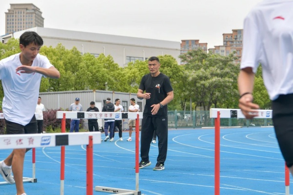 公开课在学校田径场进行,由田径全能项目教练、党员王建博授课。市体育局副局长堵文波、三级调研员樊百成、竞体处相关人员,各直属训练单位负责人、分管领导、训练管理人员、教练员代表,市体科所领导、科医人员等共同观摩。