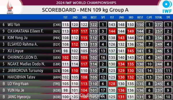 2024年世界举重锦标赛于北京时间12月7日在巴林麦纳麦打响,中国举重队派出满额20人出战,除了廖桂芳、裴鑫依两位世锦赛冠军,包括吴艳在内的其余18名选手均为近几年国内赛事涌现出的新秀。中国举重队本次参赛以历练新人、夯实备战洛杉矶奥运会后备力量为主要目标。