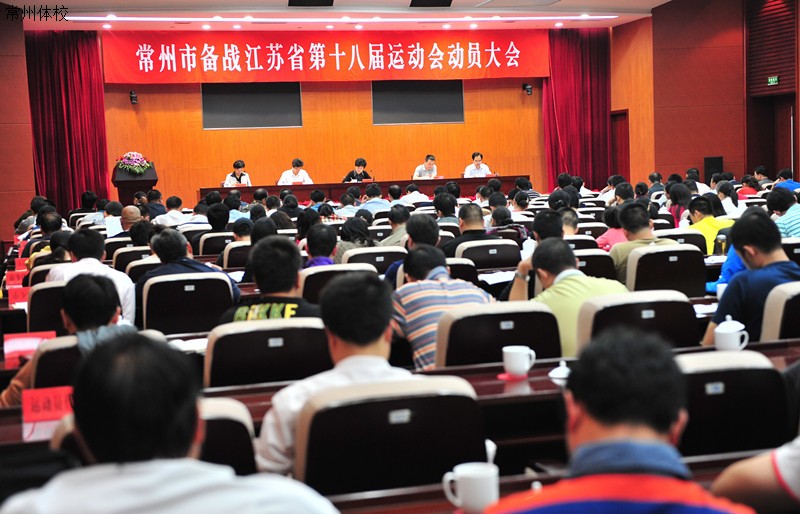 国庆节前日,常州市隆重召开备战第18届省运会动员大会。常州市教育局、财政局局长及分管局长,市体育局领导班子成员及全体机关干部,各辖市(区)分管市(区)长,各辖市(区)教育局、体育局(教育文体局、社会事业局)局长、分管局长、训练科负责人和少体校负责人,各训练单位中层以上干部、教练员、运动员代表,共230多人参加会议。常州市副市长居丽琴出席会议并讲话。会议明确,全市各备战单位要迅速行动起来,扎实推进各项备战工作,在18届省运会上保持参赛成绩继续位列全省第一集团。