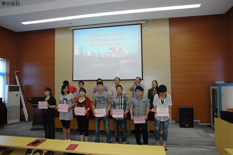 2012年5月30日下午2点,2010届武进籍优秀运动员货币安置发放大会在我校多功能厅隆重举行。会议由毛国强书记主持,武进体育局陈海明副局长、运动学校邓锁荣校长、陈来彬副校长、许佩玉副校长、武进体育局竞训科王礼千科长以及全体教练员、运动员代表和部分学生家长一起参加了会议。